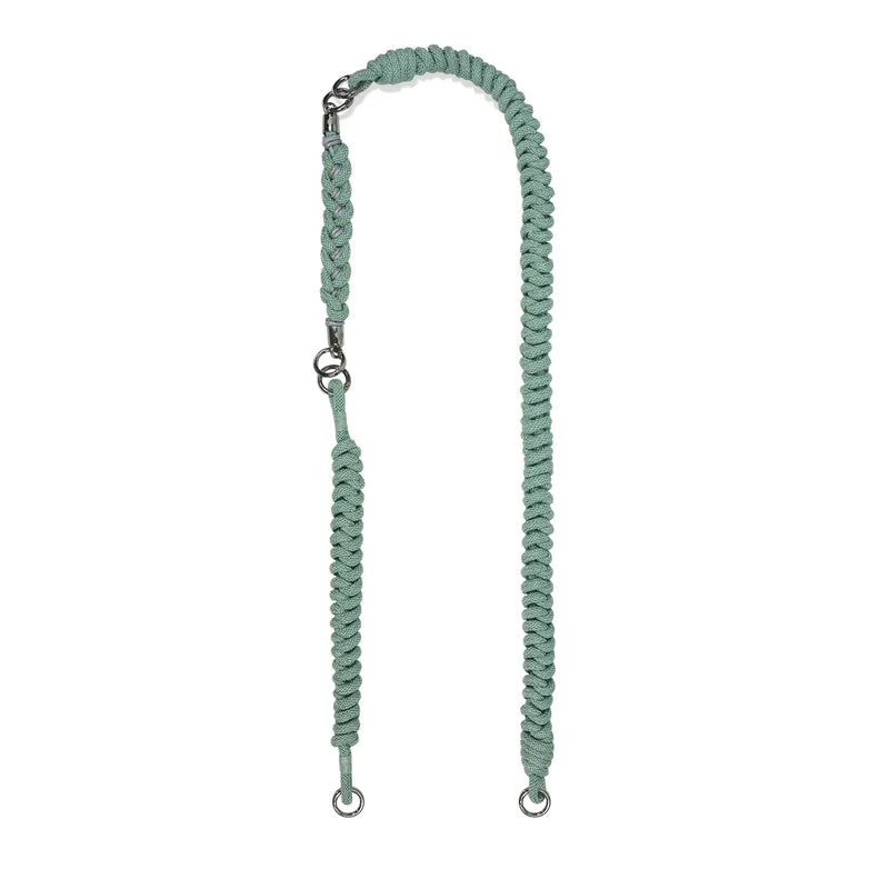 Mint Mambo colored braided TENCEL™ strap lying flat, featuring connectors for use as a phone charm or keychain.